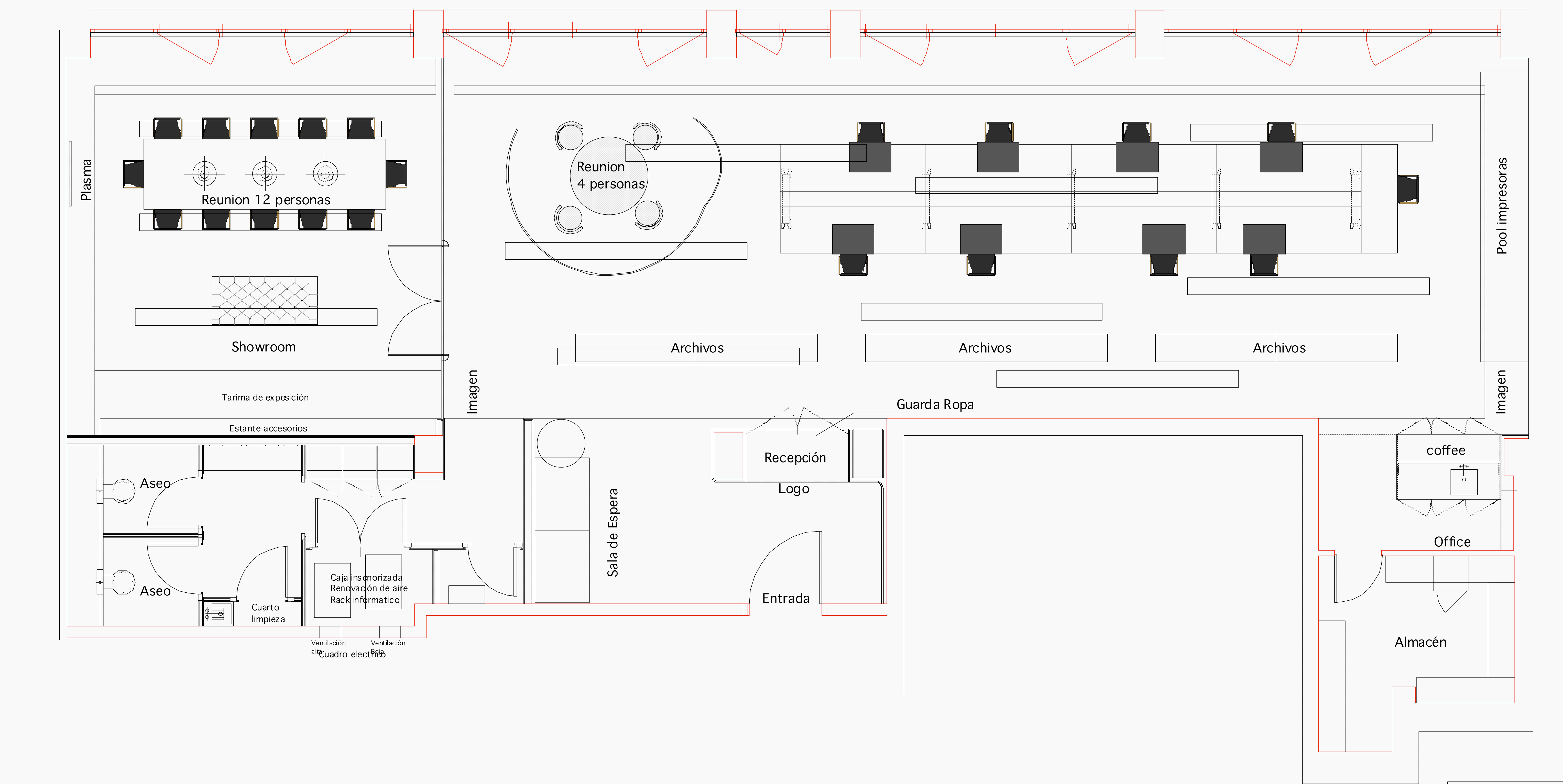 - Sala de juntas / showroom equipada con videoconferencia, cafetera y nevera